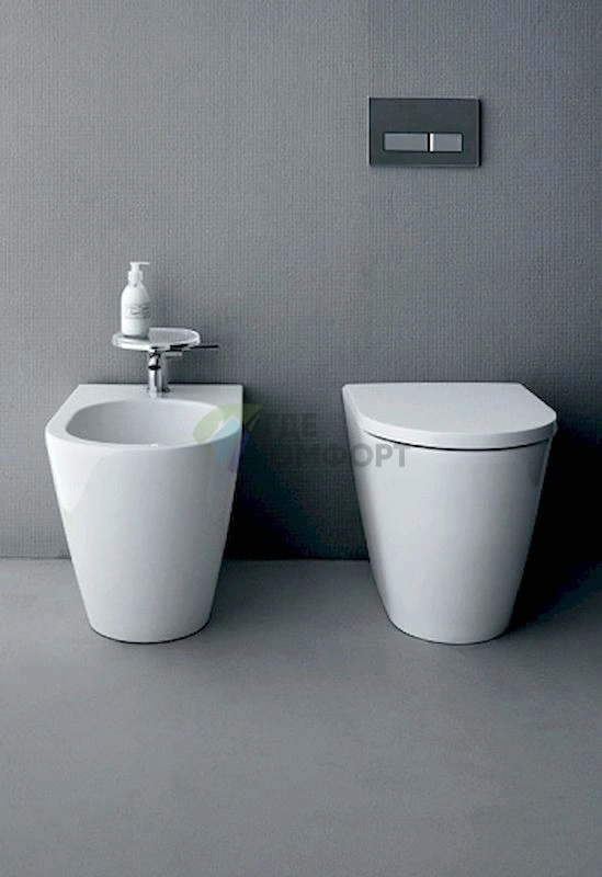 Данная модель предназначена для установки с инсталляцией Laufen. Это позволяет скрыть все коммуникации и механизм слива за декоративной панелью или в фальш-стене, создавая визуально легкую и чистую композицию. Приставной способ монтажа облегчает уборку пола вокруг основания.