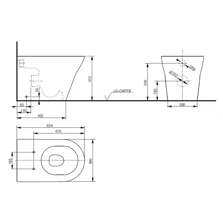- Комплектация: Без инсталляции, бачка и сиденья