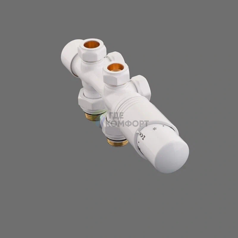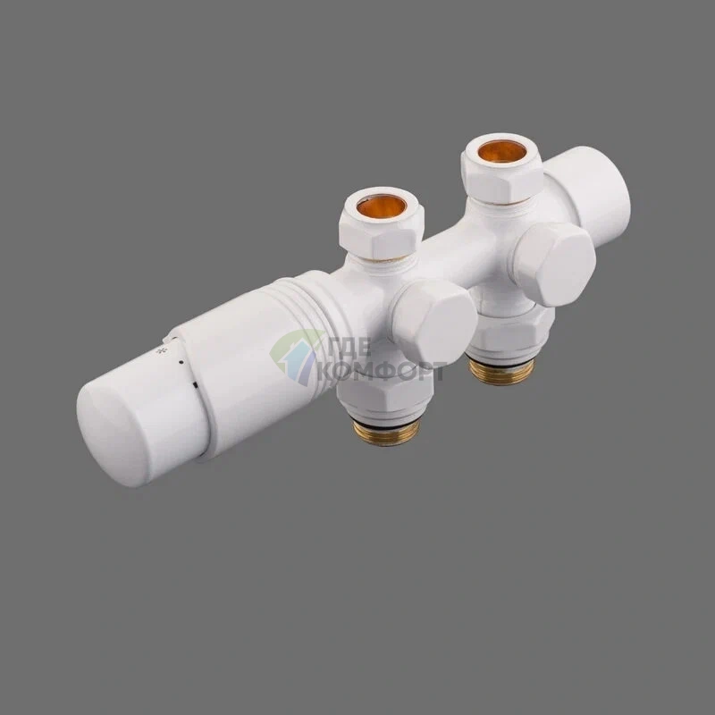 Узел нижнего подключения универсальный Delta Duo белый RAL 9016 с термоголовкой М30x1.5