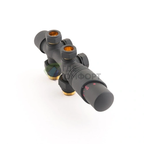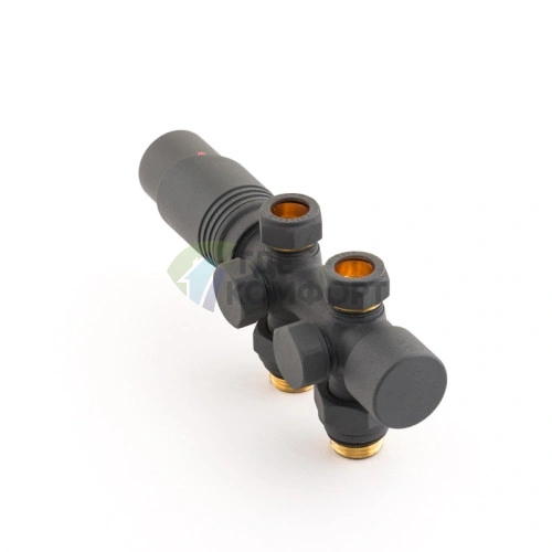 Узел нижнего подключения универсальный Delta Duo черный RAL 9005 с термоголовкой М30x1.5