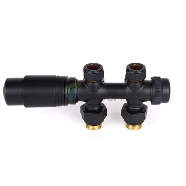 Узел оснащён встроенным запорным клапаном и возможностью тонкой настройки потока. Это упрощает балансировку системы отопления и дальнейшее обслуживание радиатора. Элегантный черный цвет (RAL 9005) гармонично впишется в современный интерьер.
