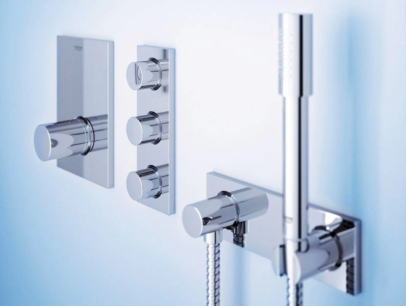 Термостатический вентиль Grohe Grohtherm F предназначен для скрытого монтажа в систему водоснабжения. Он совместим со стандартными выходами для подключения душевой лейки, ручного душа или систем тропического душа. Для корректной работы требуется подключение к линиям горячей и холодной воды с фильтрами грубой очистки.