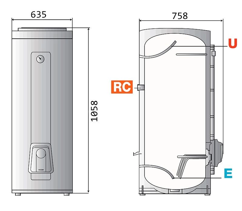 Бойлер совместим со стандартными системами ХВС. Имеет два режима работы: экономный (нагрев до +60°C) и комфортный (до +75°C). Управление осуществляется с помощью механического регулятора на панели. В комплект входит группа безопасности и крепежная планка.