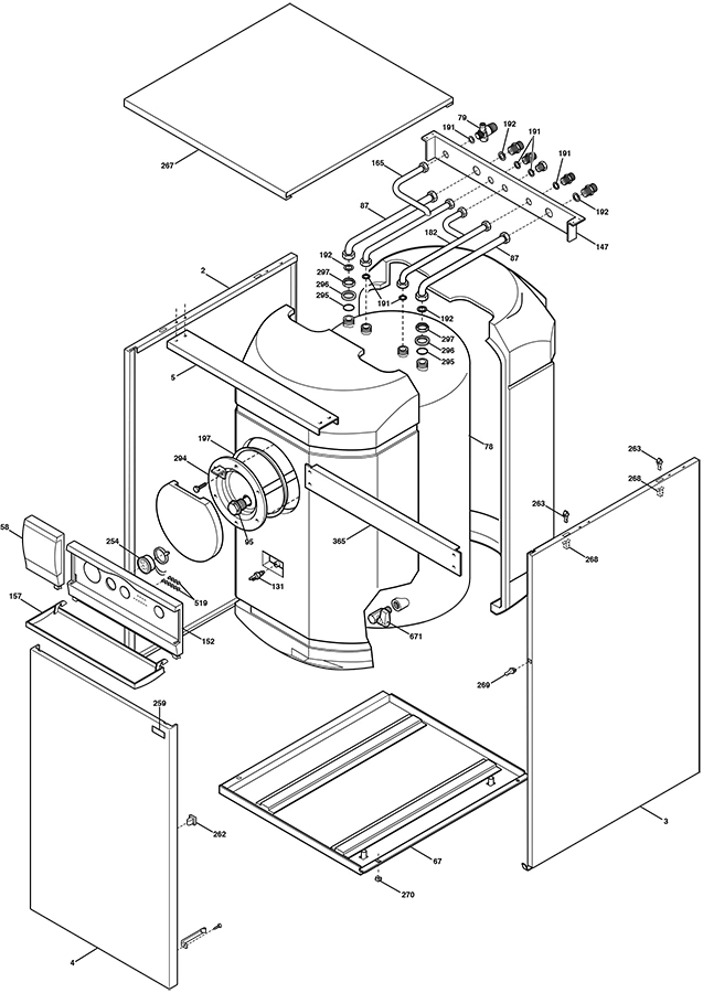 - Встроенный змеевик из меди с теплообменной поверхностью 0,85 м²;