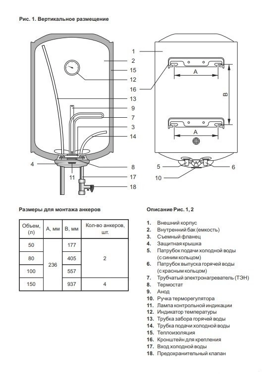 Электрический накопитель комплектуется предохранительным клапаном и индикацией нагрева. Особенности подключения: