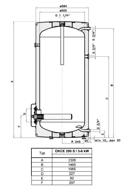 Техническое резюме бойлера Drazice OKCE 250