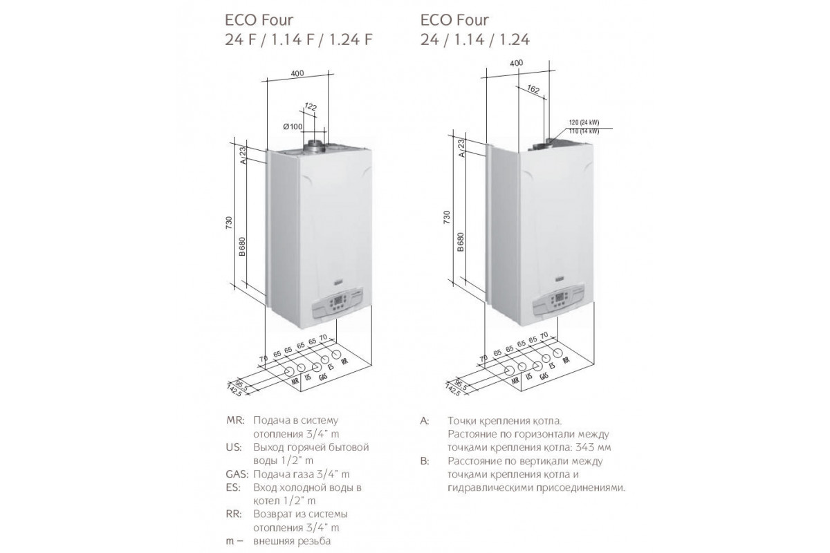 - Дымоход: Для Baxi Eco Four требуется коаксиальный дымоход диаметром 60/100 мм . Муфта для забора воздуха может быть установлена как слева, так и справа от дымохода, что даёт гибкость при монтаже.