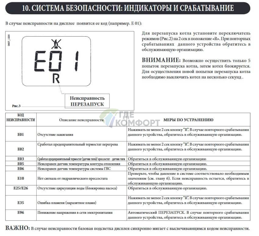🔥 Ошибка E01 (или 01E): «Нет розжига» — почему котёл не запускается?